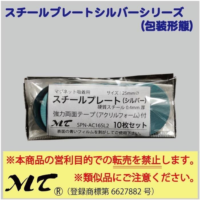 スチールプレート(マグネット吸着用)丸型シルバー 25mmΦ 強力シール付 10枚入(ac16)